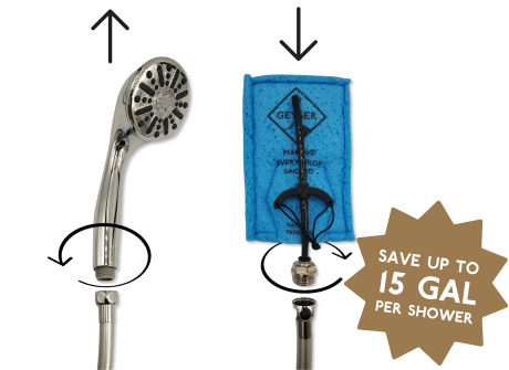 The water savings are 10X! Most shower heads use between 2-3 gallons per minute. With the Geyser EcoShower, you'll use between .2 - 1.2 gallons per minute.